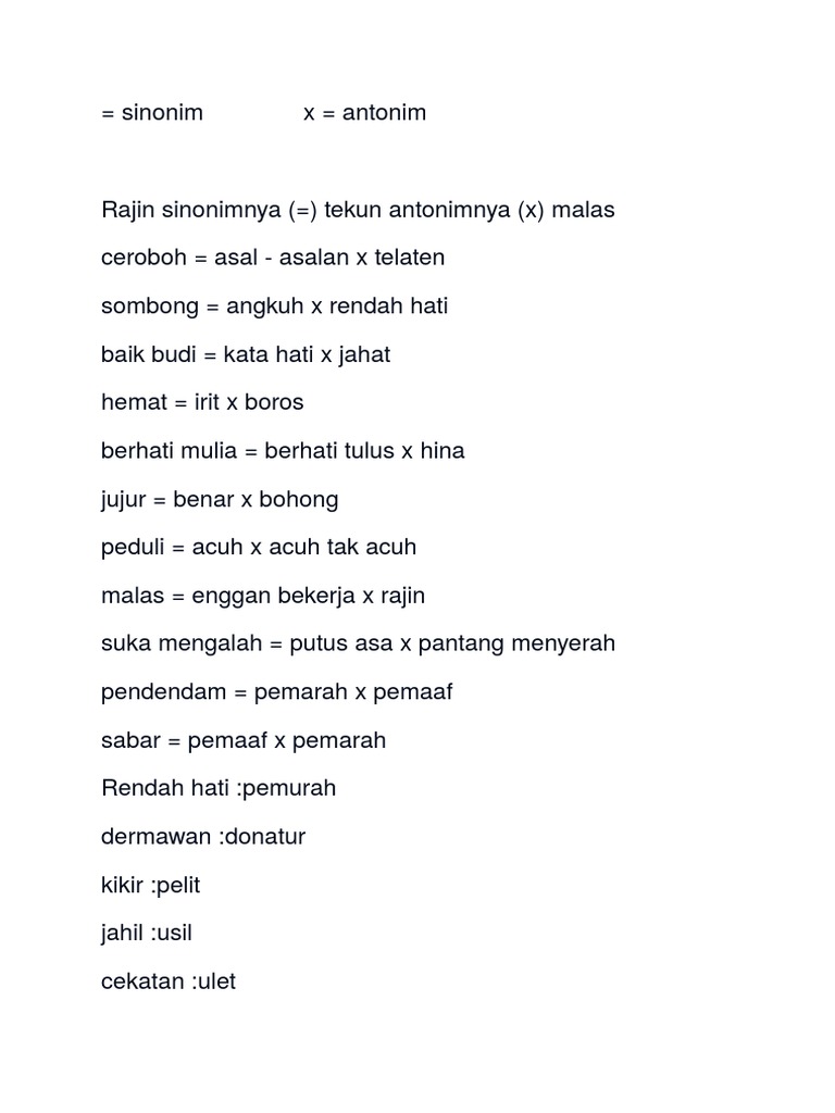 Berikan Antonim Dan Sinonim Dari Kata Tersebut 25 Cekatan Brainly Co Id