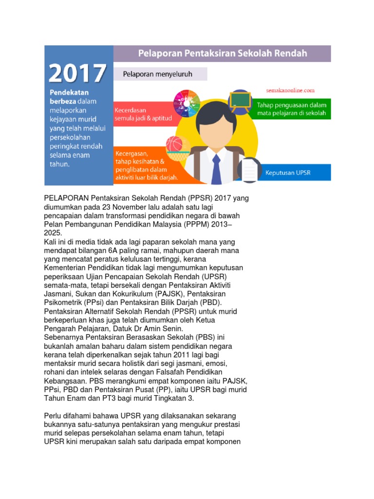 Ppsr Ganti Upsr 2018 Kenali Pelaporan Pentaksiran Sekolah Rendah